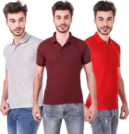 Men’s Polo Neck Short Sleeve Casual Tshirt Combo of Red, Maroon, Grey colors (Pack of 3)
