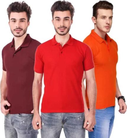 Men’s Polo Neck Short Sleeve Casual Tshirt Combo of Red, Maroon, Orange colors (Pack of 3)