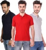 Men’s Polo Neck Short Sleeve Casual Tshirt Combo of Dark Blue, Red, Grey colors (Pack of 3)