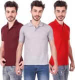 Men’s Polo Neck Short Sleeve Casual Tshirt Combo of Red, Maroon, Grey colors (Pack of 3)