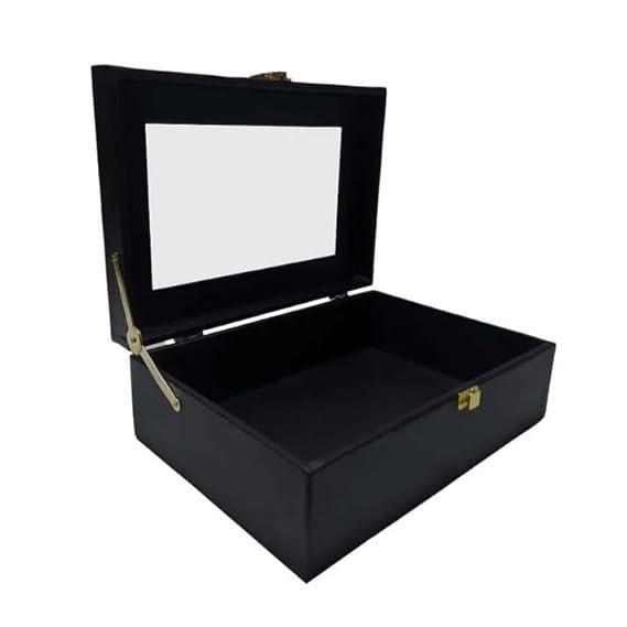This multipurpose storage box with a transparent lid is the perfect blend of elegance and practicality. Featuring a sleek design with a clear window, this box allows you to showcase or access your stored items effortlessly. The secure gold-tone clasp ensures safety while enhancing the aesthetic appeal. Whether you’re organizing jewelry, watches, accessories, or gifting someone special, this storage box is a versatile solution for home, office, or retail use.