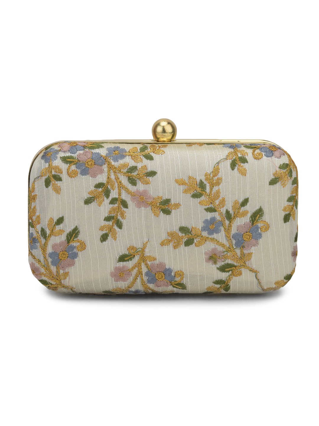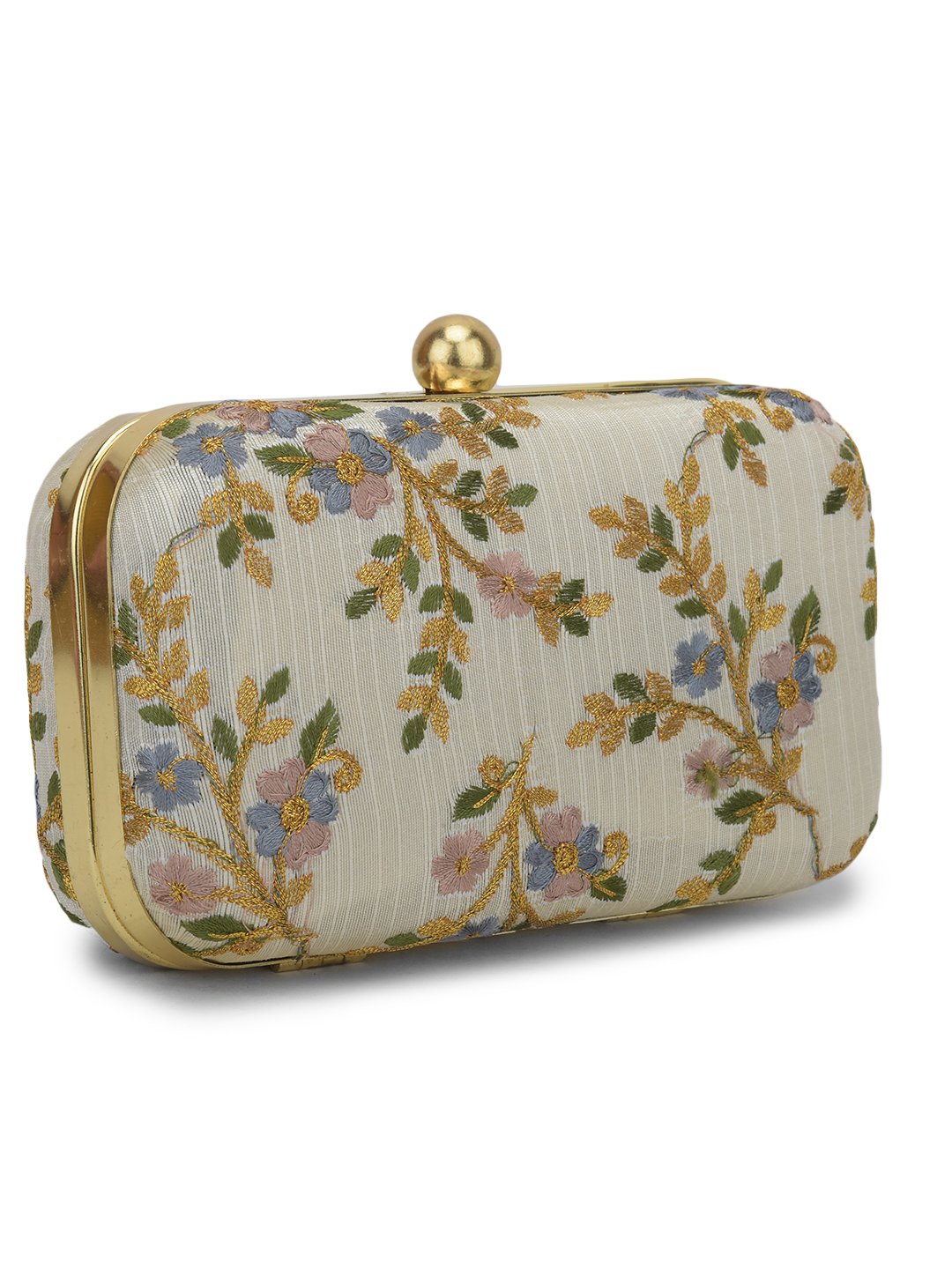 White & Gold-Toned Embroidered Party Box Clutch For Girls and Womens For Girls and womens